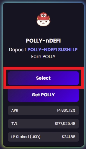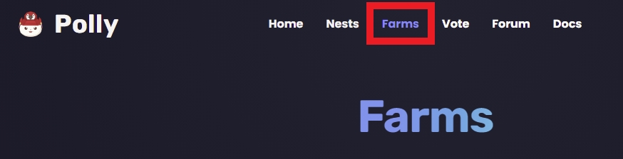 1) Go to PollyFinance.com and click on the “Farms” tab near the top and connect your wallet.