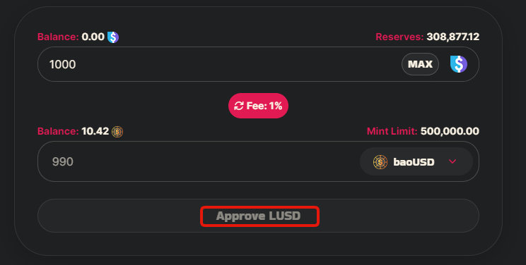 Enter the amount you want to swap/mint then click approve at the bottom to allow the contract to use your token, this will bring up a transaction in your wallet when it does click confirm.