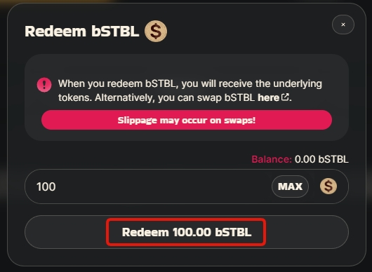 Once you are happy with the amount, click the redeem button and approve the transaction in your wallet.